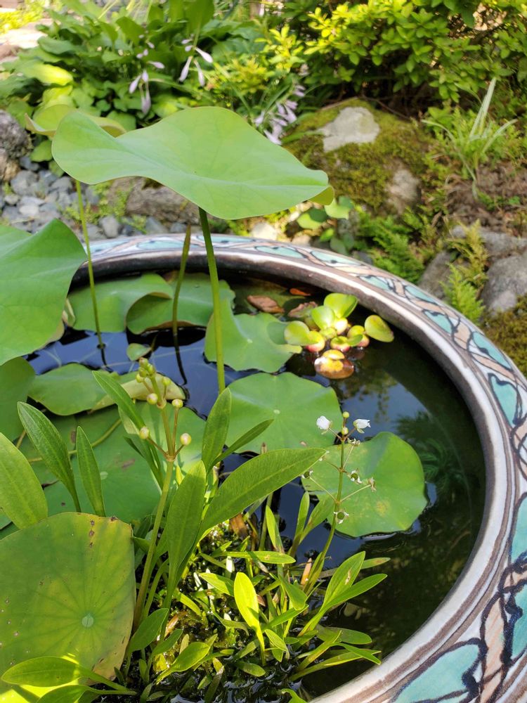 これに土を入れて 蓮を植えておられますか?オモダカはどうして植えておられますか?