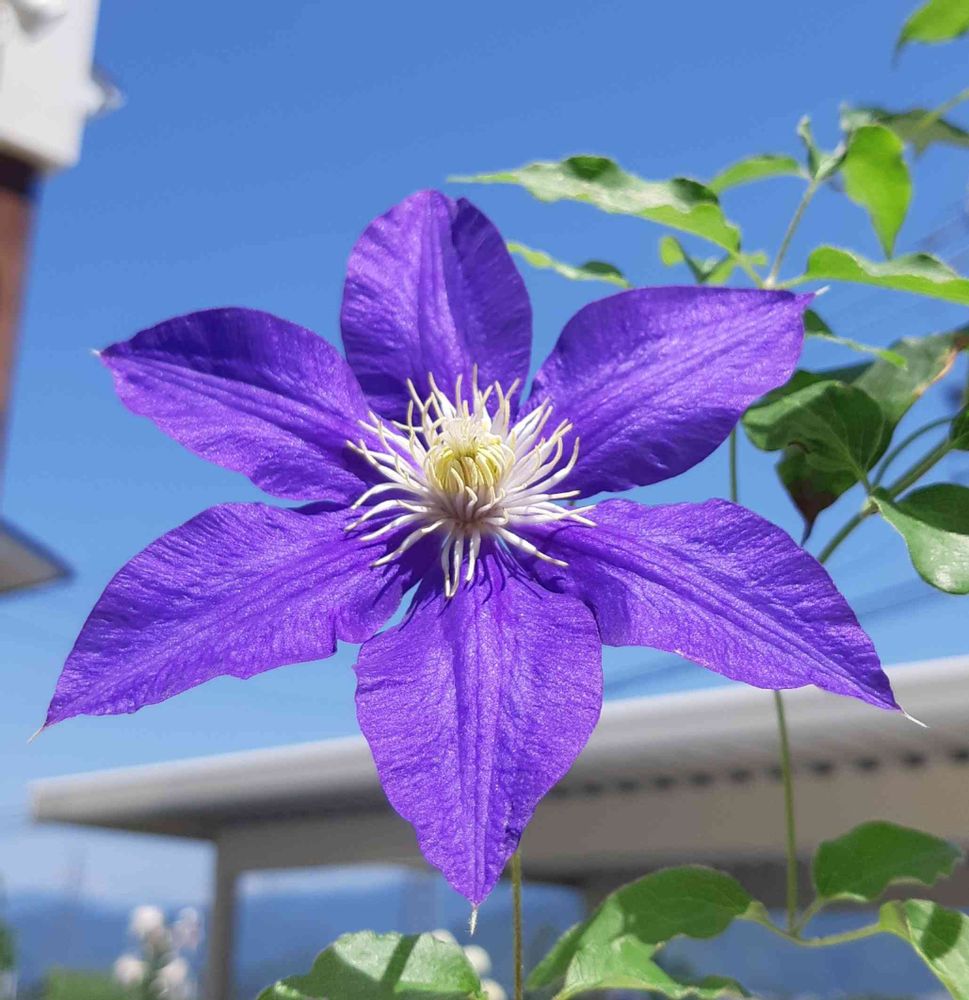 挿し芽っ子のクレマチスHFヤング、2番花が開花💠🌿気分だけでも涼しくなります💙