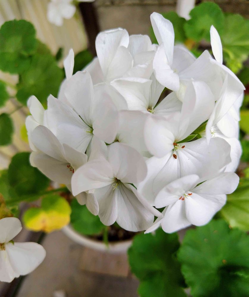 真っ白なゼラニウム咲いています 何回も咲きましたが今回まん丸で可愛いです(✿ᴗ͈ˬᴗ͈)⁾⁾♡‹‹\( ´▽`)/››〜♪
