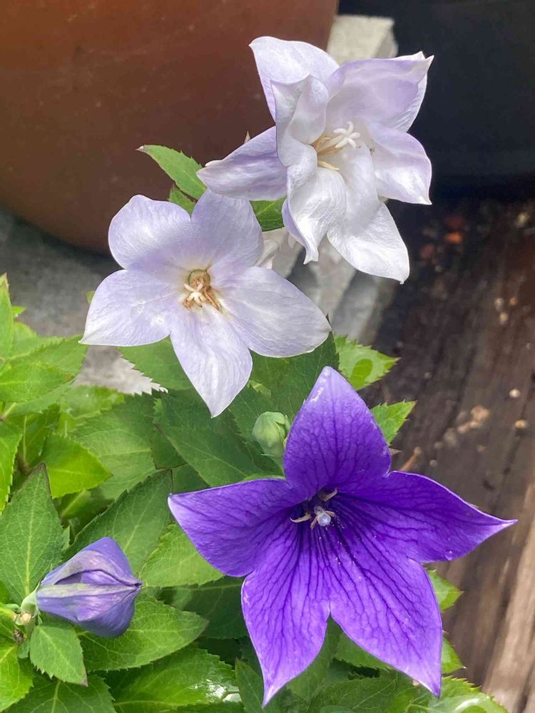 バルーンみたいな蕾が次々に弾け今年も元気に咲きました💜🤍綺麗✨