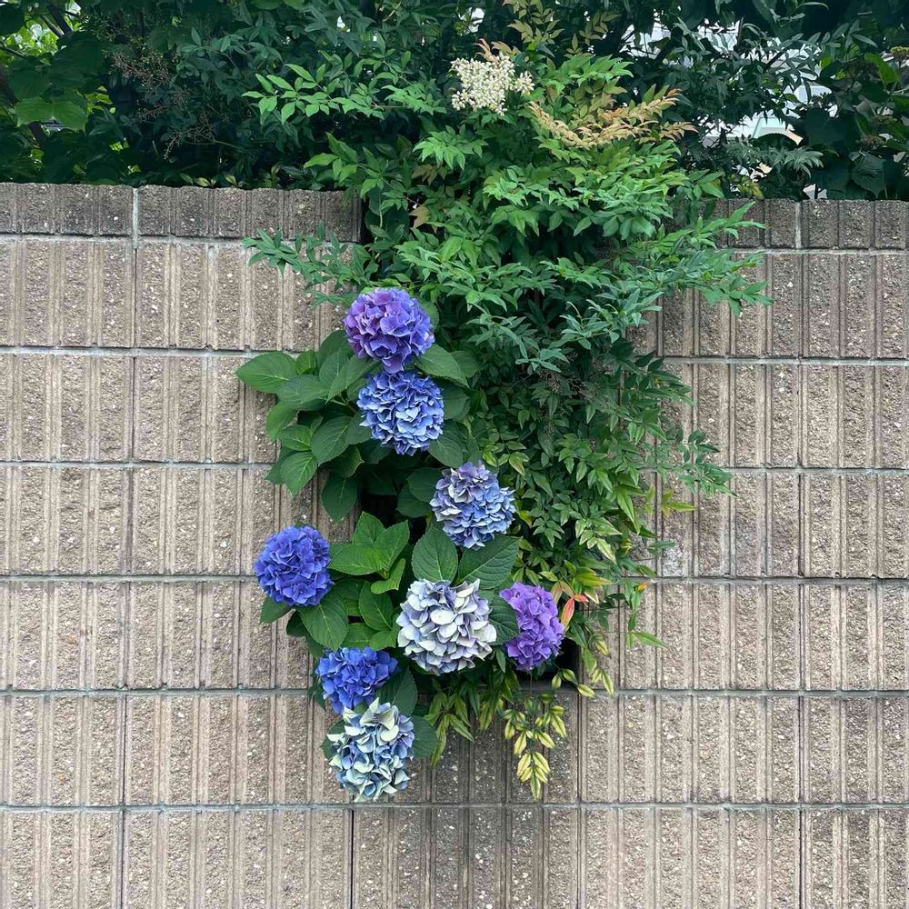 ガクアジサイは、山野草っぽい(笑)ところが好きでしたが、このブロック塀のアジサイを見てから 西洋アジサイの魅力も発見しました🤭