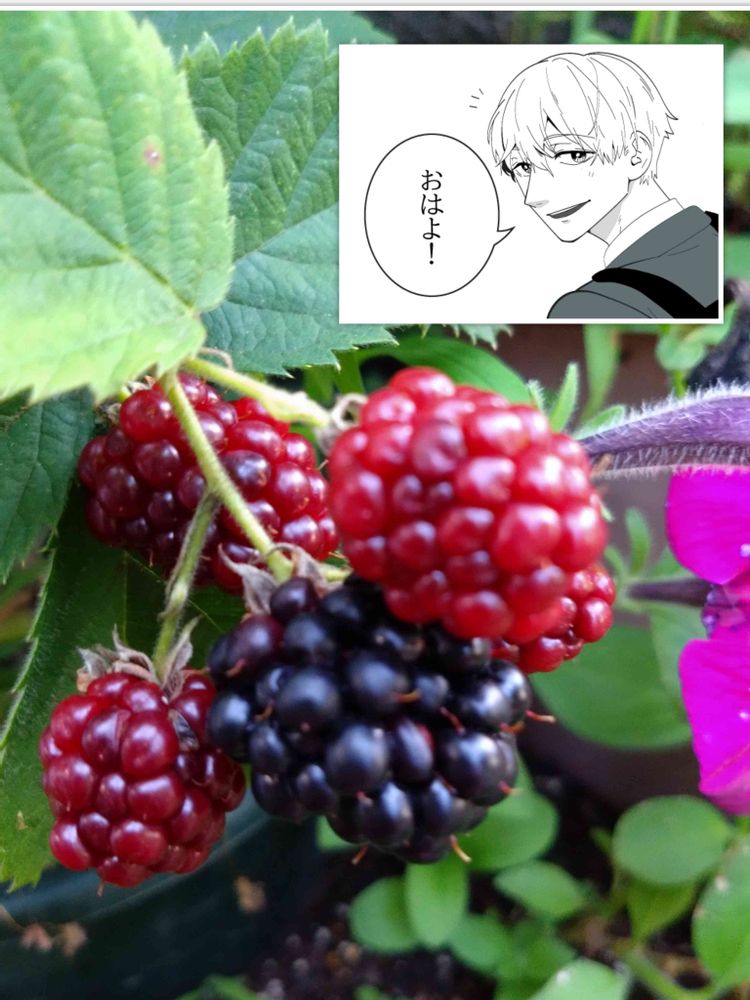 花も有るけれど今日は今年初のブラックベリーが収穫出来そうなのでコレ\(^o^)/