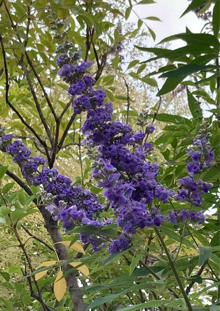 大きめの木に育っていて遠目にしか花をみることができません。よくよく見ると小さな花の集まりでかわいい。