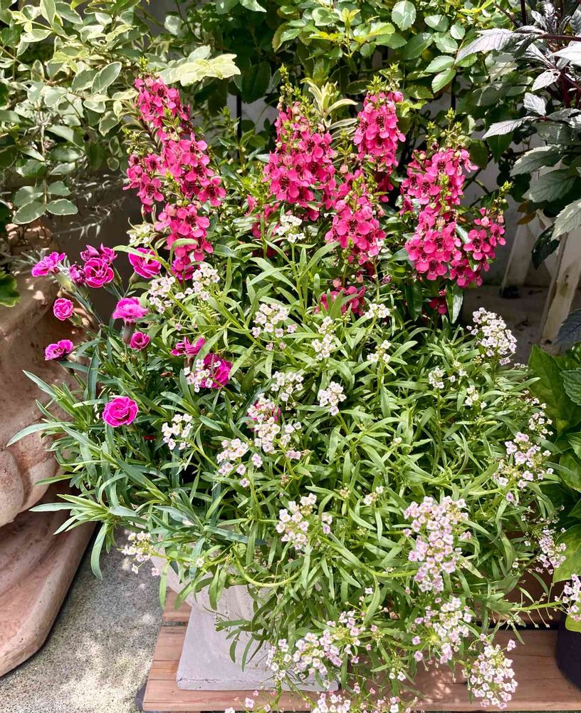 アンゲロニア、宿根アリッサム、何とかリップル❓の寄せ植えです。可愛く頑張って咲いてくれてます(^^)