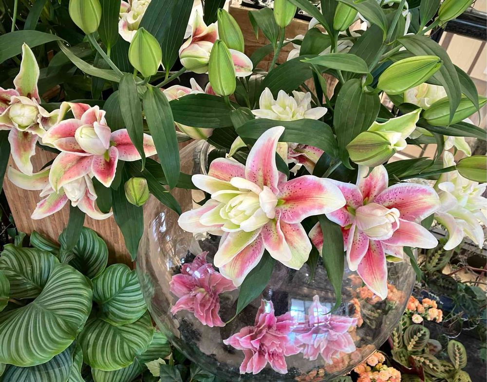 可愛いユリ💗アレンジが素敵過ぎて🥰寄って撮っても、離れて撮っても✨素敵〜❀︎