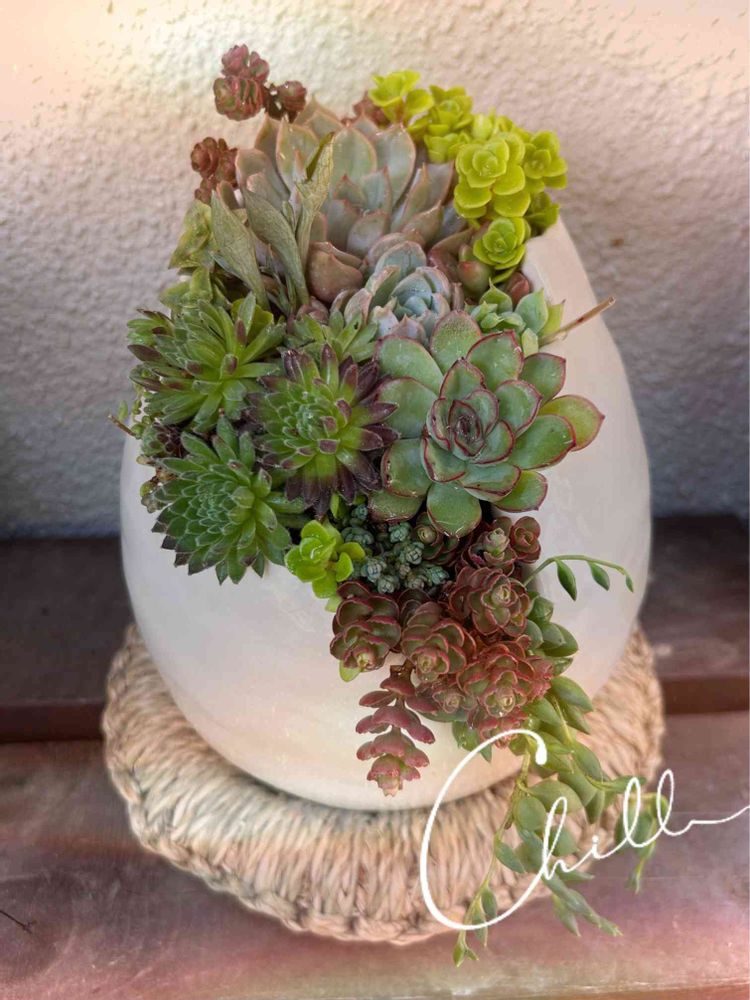 何も植えてなかった鉢にやっと多肉の寄せ植えを作りました🤗