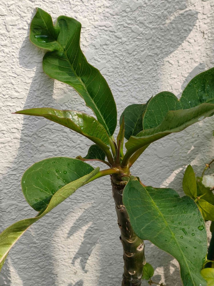 私もプルメリア、フリーマーケットで挿し木して葉っぱが出てきた子をお迎えしちゃった。今度育て方教えてね。