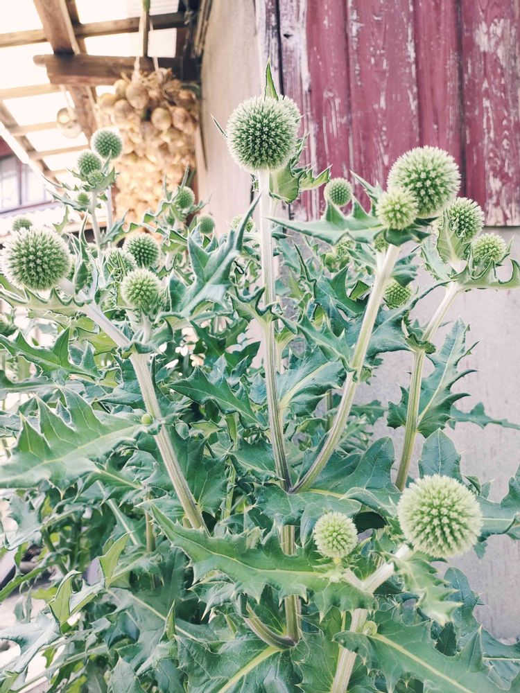 私は白い花、丸い花に惹かれる傾向にあるので、このエキノプスはドンピシャ好み💕今の状態もかわいいけれど、白いお花が楽しみでなりません😆
