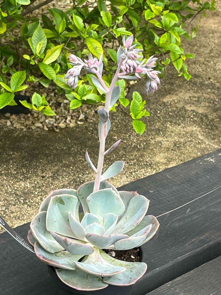 さん こんにちは♪茎が太くて沢山花が咲きそうです❣️買った時から大きめだったから開いてきて更に大きいですけど😄ダスティーローズ多肉初心者には丁度良いみたい❗️昔多肉は育ててたんですけどね、再挑戦しているところです💪