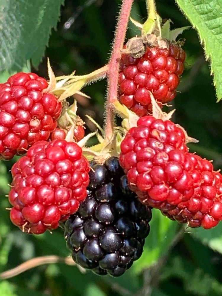 庭のブラックベリーさん、毎日黒く熟したのから収穫😊アイスクリームに添えて食べると幸せです😋