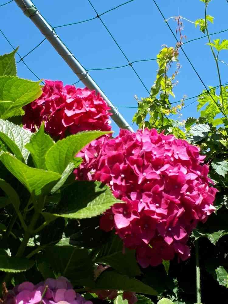 青い空…真っ赤なアジサイ…緑の葉っぱ… チョッピリ元気をもらいました