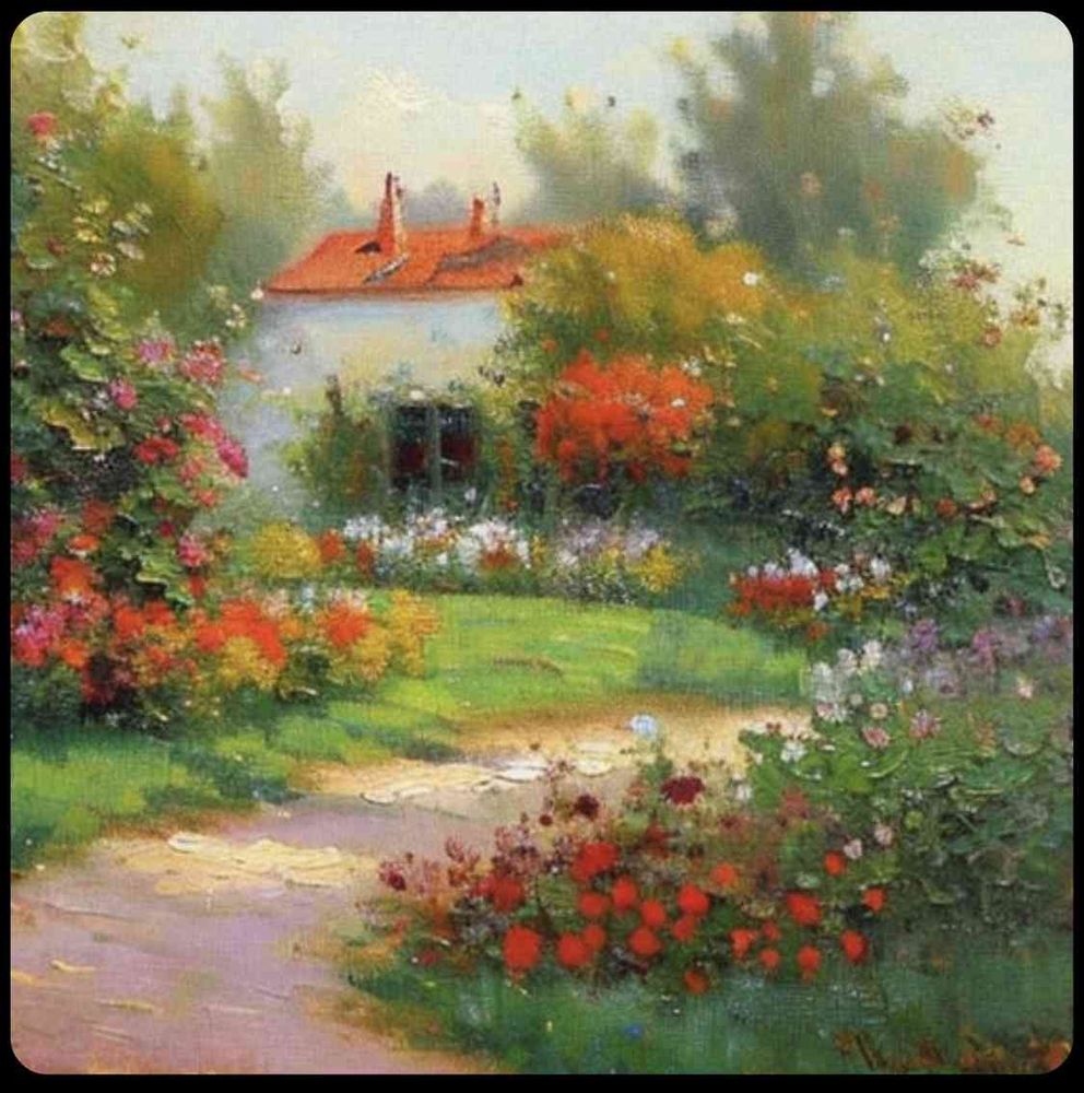 10K,高品質,写実的,油絵, オルガ・ヴィジンガー=フローリアン,花の庭の風景画
