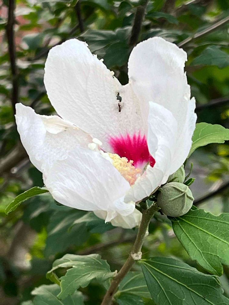 ムクゲ‼︎ 白地に濃いピンク🩷とっても良い色ですね♪(๑ᴖ◡ᴖ๑)♪