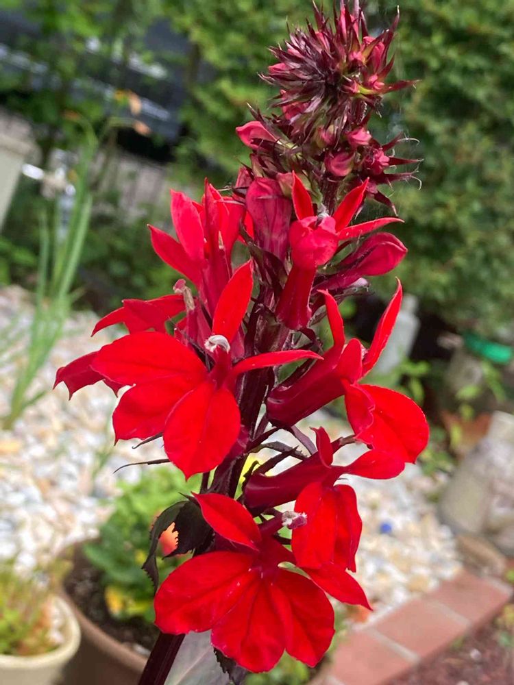 宿根ロベリアのタグもついていましたが、鮮やか赤色を雨降る前に🤳