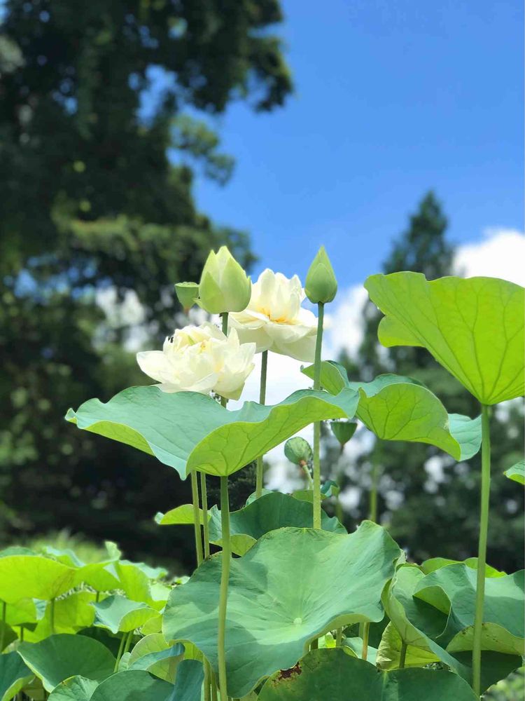 🪷スキッと伸びた茎に白いハスの花〜✨