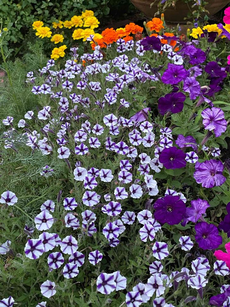 紫のサフィニア奥にはマリーゴールドもあります💟💜💟