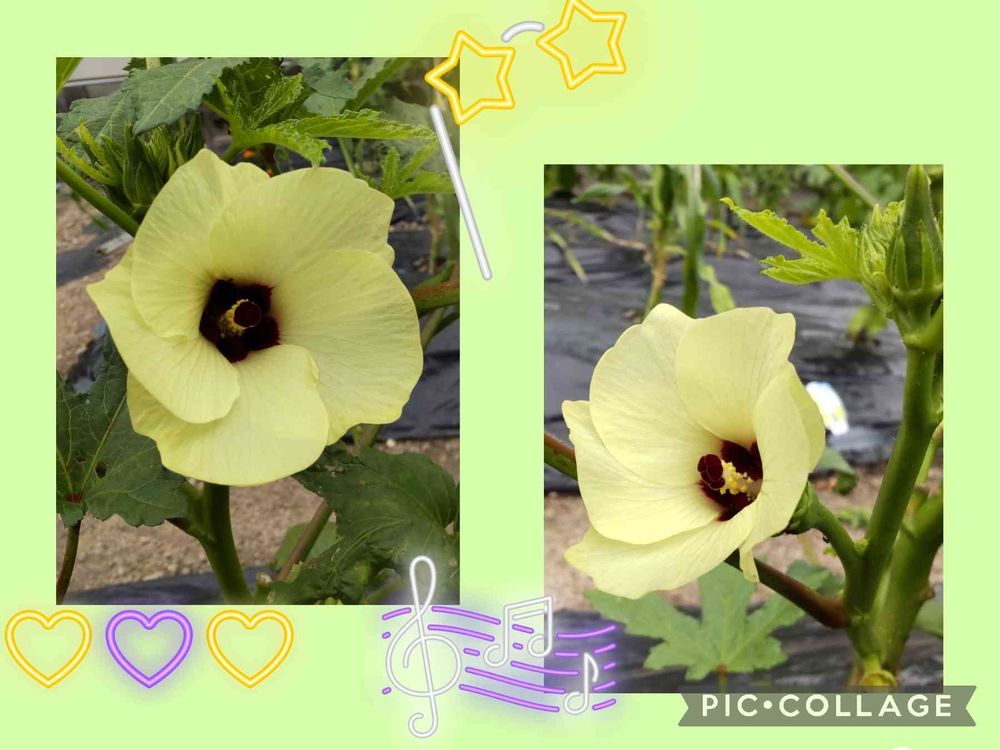 オクラは既に5〜6本収穫しているのですが、タイミングが合わなくて、今朝ようやく綺麗に咲いているお花が見られました🤗