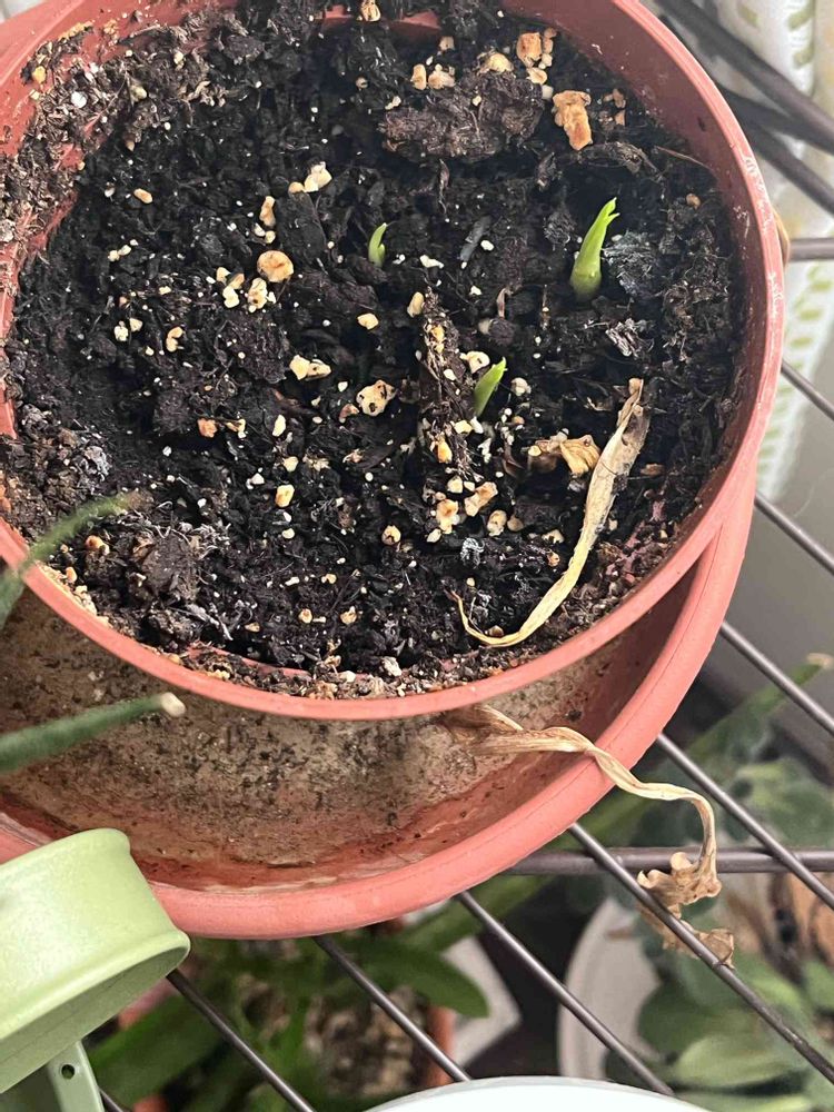 他のカラーは葉っぱもりもり出てるし、花も咲いてるのに、この子はまったく動きがないから、もう枯れてしまったんだと思ってた。