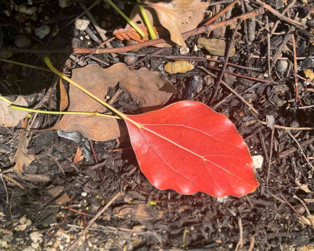ふと足元を見ると、夕焼け空みたいな暖かみのある艶やかな葉が👀‼️