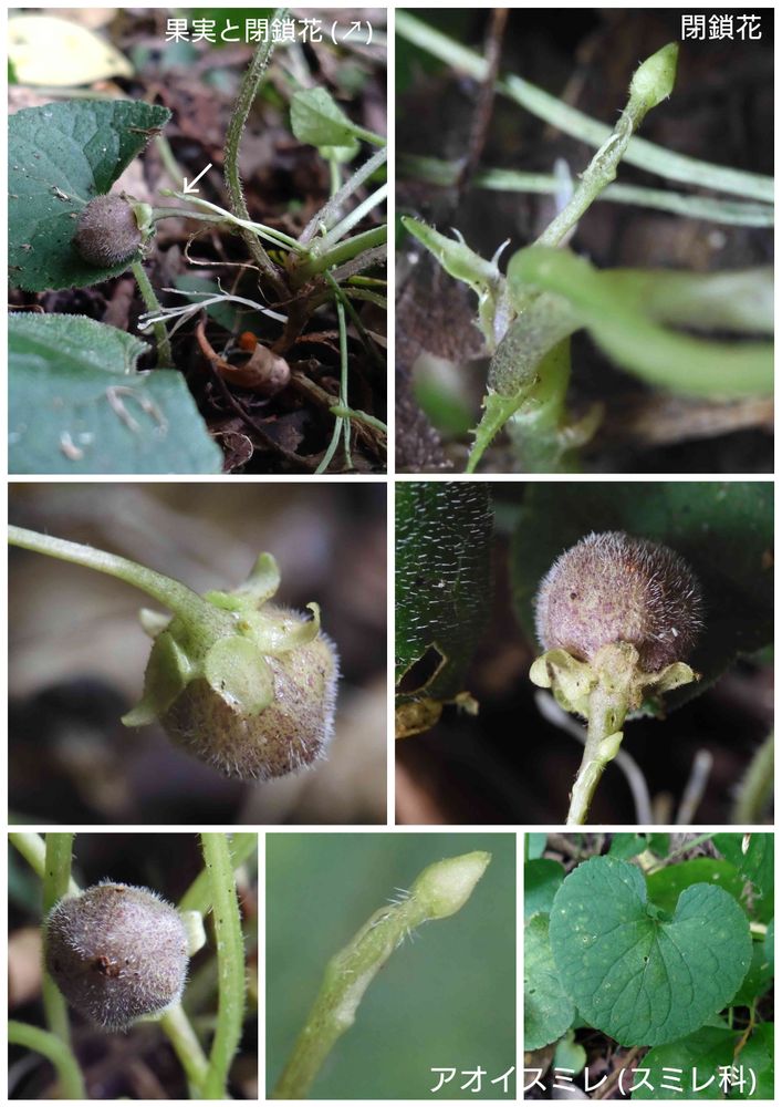 通る度、気になっていた丸い葉。株元を探ると、毛むくじゃらの果実と閉鎖花がついていました。アオイスミレと確信。花を見たことがないので、来年はぜひ見ようと思います。