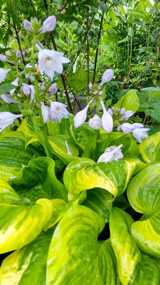 黄色の斑が入ったホスタ、花が咲いてました😀
