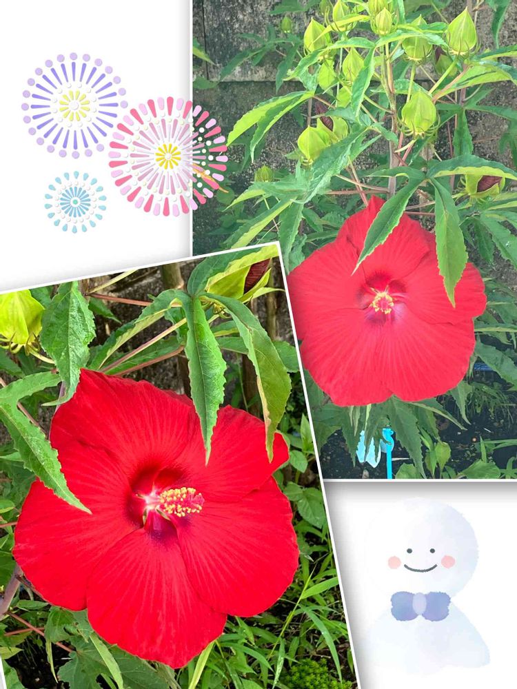 真っ赤なタイタンビカスさん達とても可愛いですね❤️❤️❤️葉っぱもグリーンカーテンのように繊細ですね💚💚💚「高円(たかまと)の野辺の容花(かほばな)、面影に、見えつつ妹は、忘れかねつも」大伴家持(万葉集)🌟※容花(かほばな)とは、むくげ、ルコウソウなどの昼顔、カキツバタなど🌟容花のようなあなたの面影が忘れられないのです🌟今日も清々しい一日をお過ごし下さいネ💐💐💐