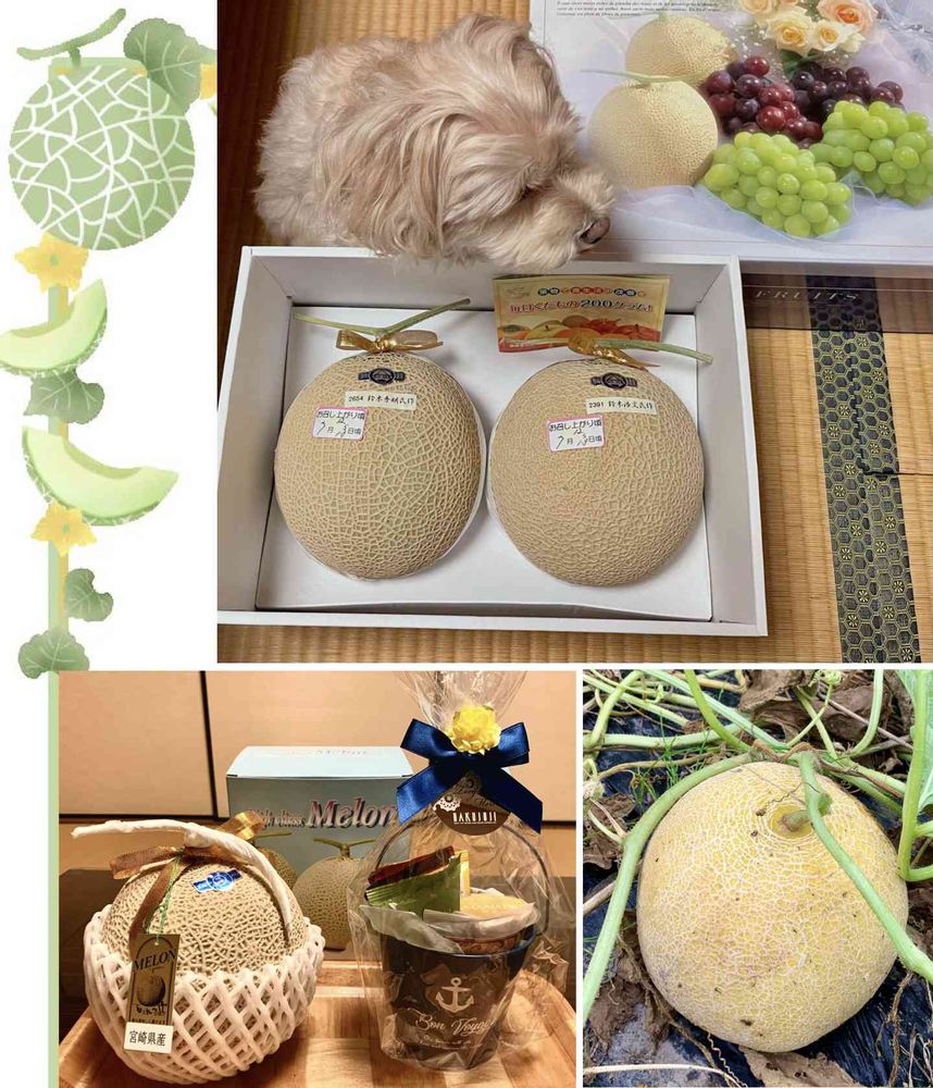 お知り合いからと娘からの頂き物のメロンと自宅の畑のメロンです🍈(ꔛ♡🍈)💕