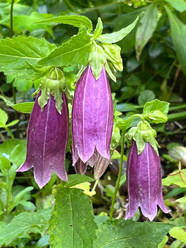 去年の溢れ種で出たホタルブクロ みんな下ばかり見てる