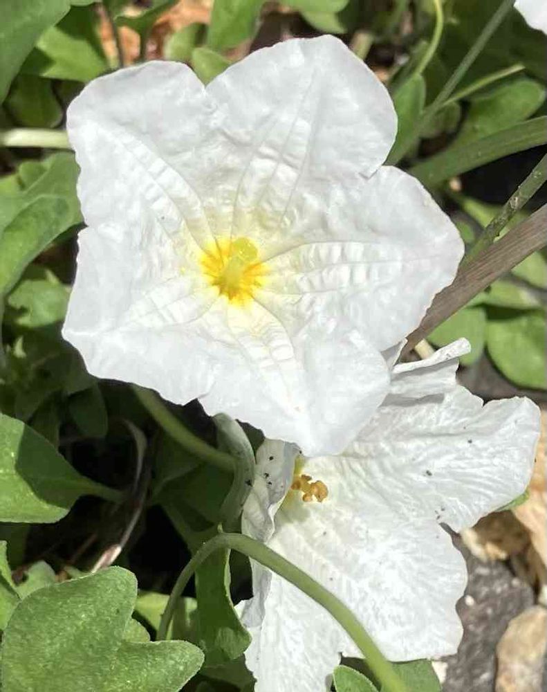 白い3センチ位のキキョウの様なお花が道端を這っていました🥰✨