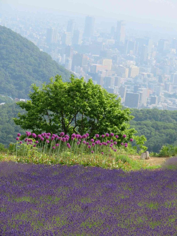 ラベンダーとアリウム・ギガンチウム越しに見下ろす市内👀📷️💕