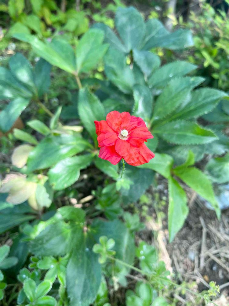 零れ種から 咲いたポピー✨細くて小さくて、クリスマスローズと一体化🎶