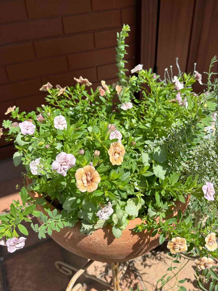 4月に作ったギャザリングのリースですが、水切れが心配だったので鉢植え🪴にしましたが成長がゆっくりです🐢