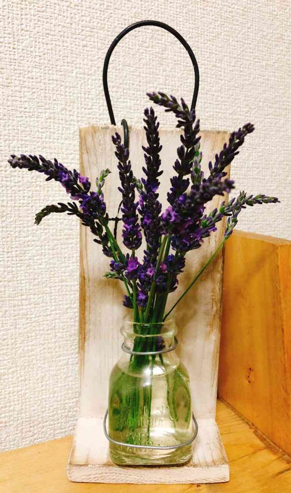 壁に掛けられる花器もいいね~。 (σ・ω・)σ。🌟ラベンダーの香りが好き~。癒されるよね~。🌿🌿🌿