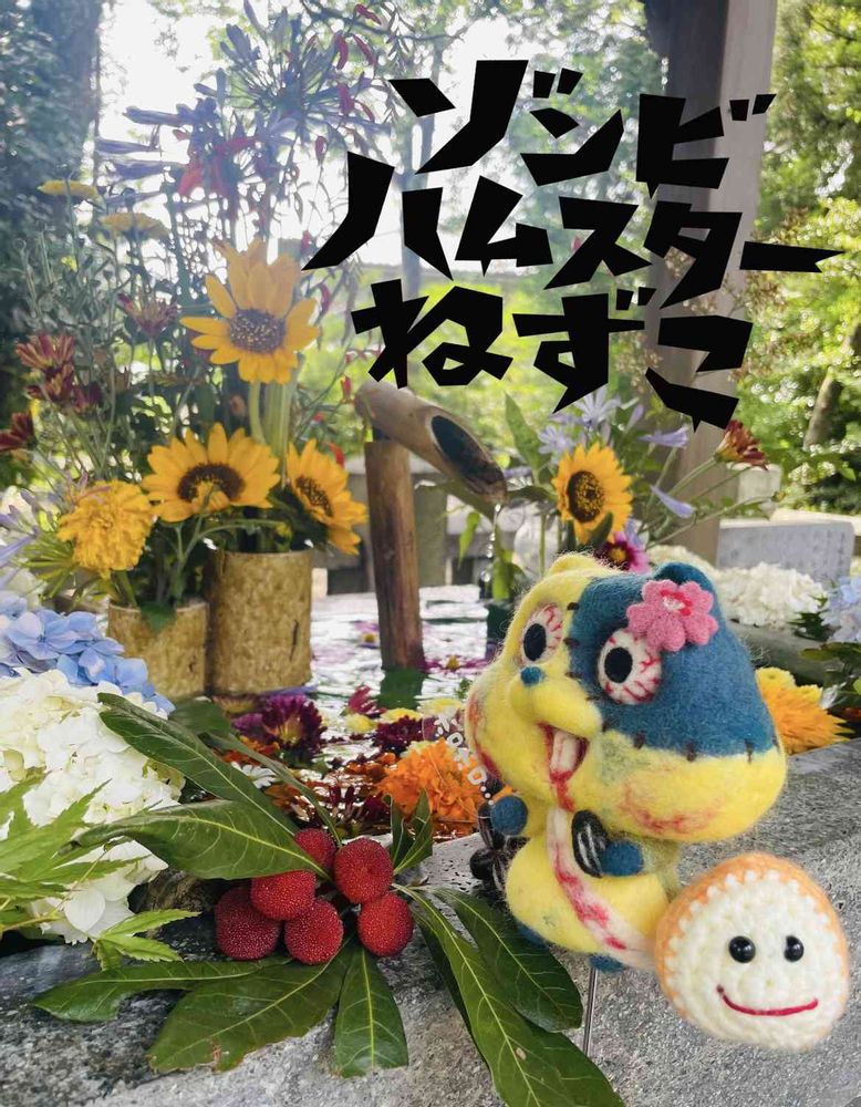 お花が大好きなハムスター〝ねずこ〟です🧟♀️🐹 絵本『ゾンビハムスターねずこ』読んでみてください💕 生息地は徳島県です❣️