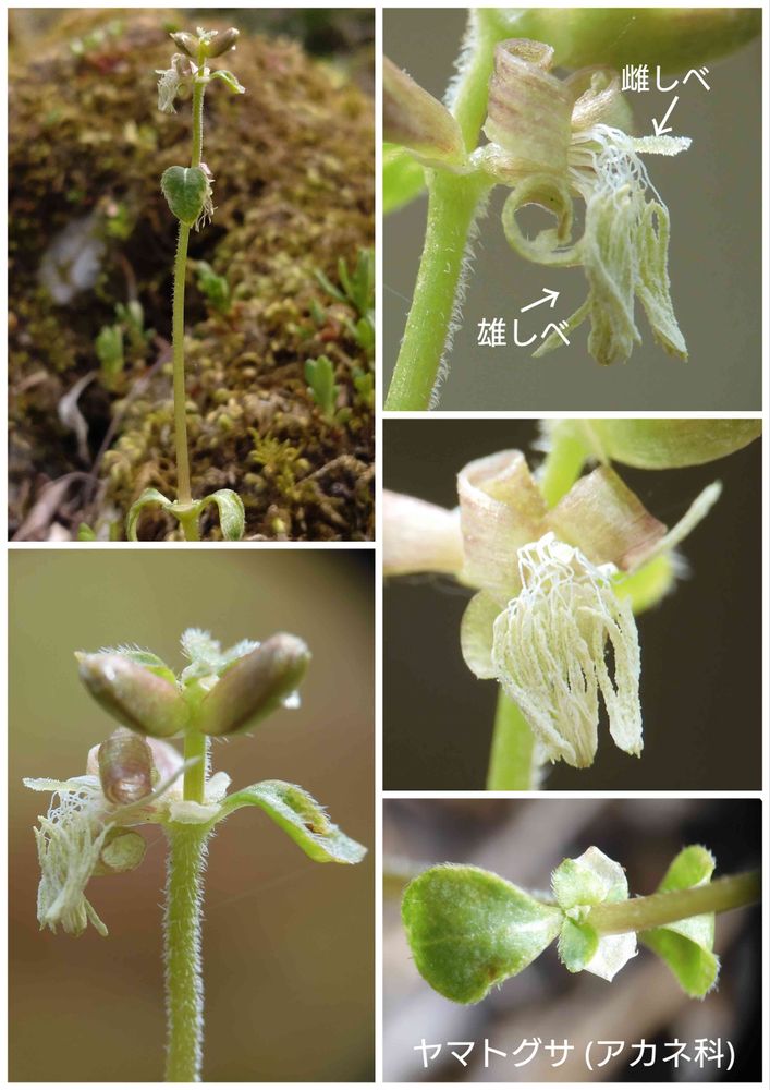 ところで、この花におかしなところがあります。どの資料を見ても、ヤマトグサは雌雄異花となっていて、両性花はつけないようです。この花は雄しべと雌しべがあり、両性花となっていておかしいです。どう見ても雌しべに見えますが、違うのでしょうか。