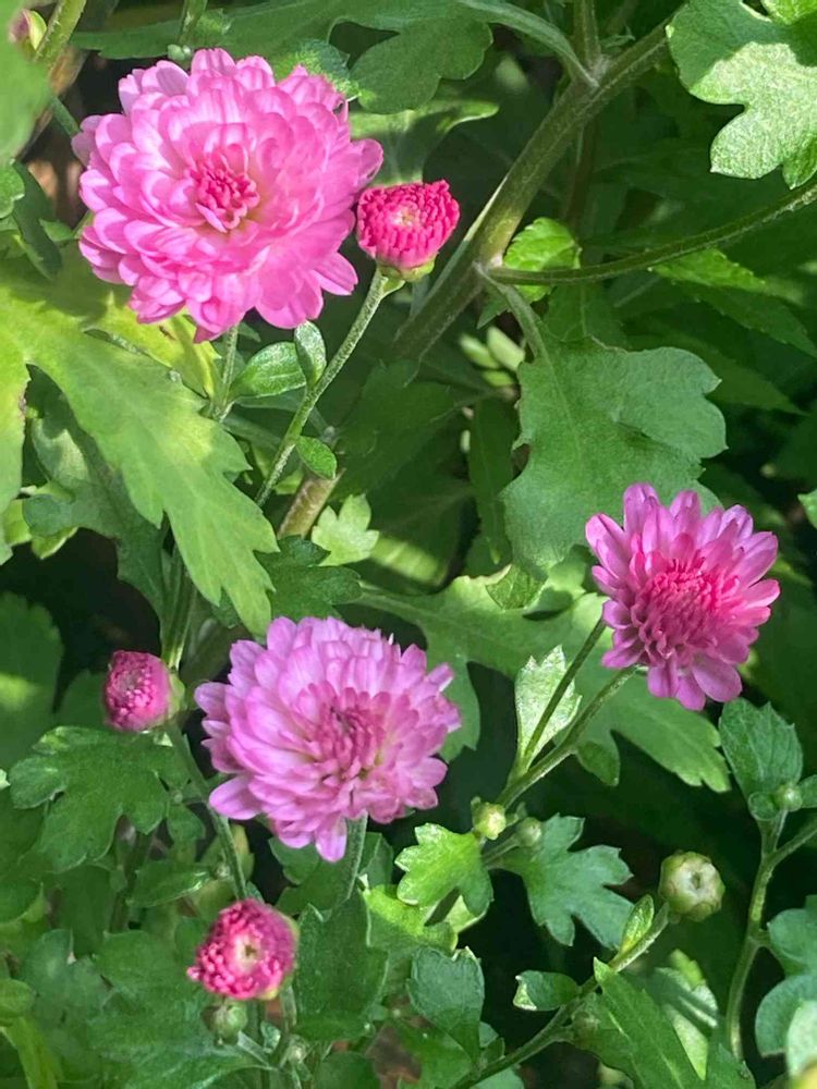 去年花後に地植えして4〜50センチに大きく育ったマムさん、どんどん蕾がついて暑さにも雨にも強い元気者です❣️