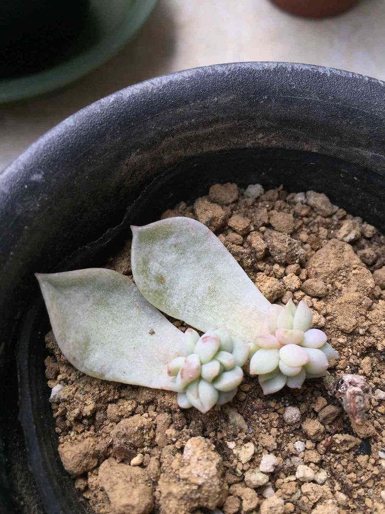 売れ残って親株は枯れたんだけど、葉挿しが生き残った感じの、このふたり🌱