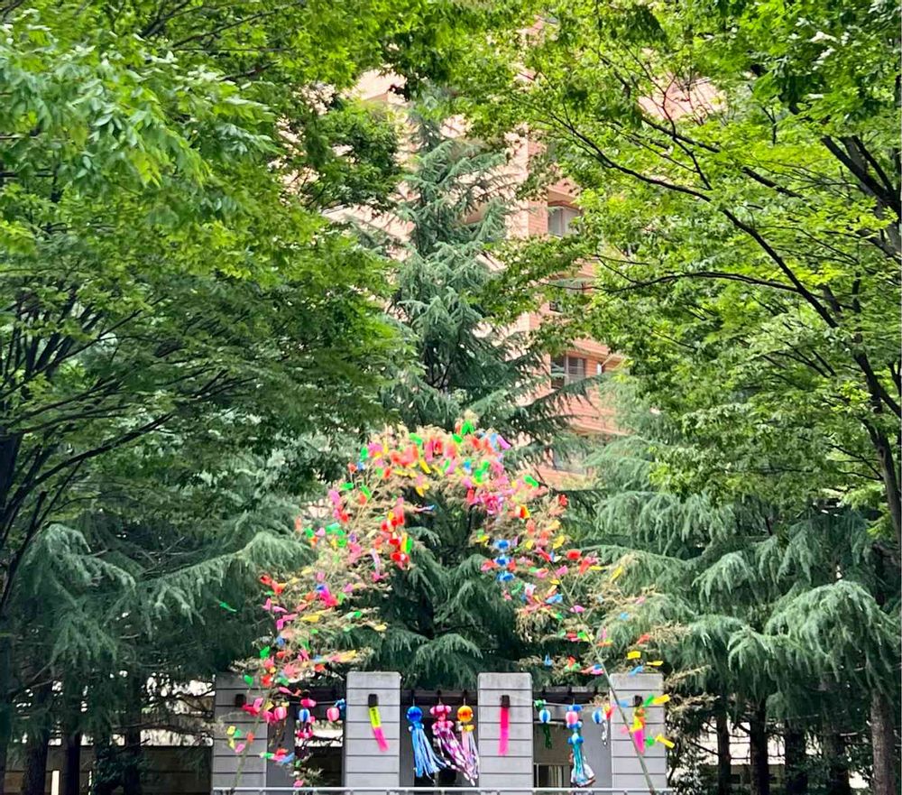 20年経つと中庭の木も大きくなり、七夕飾りが小さく見えるようになってしまいました😯