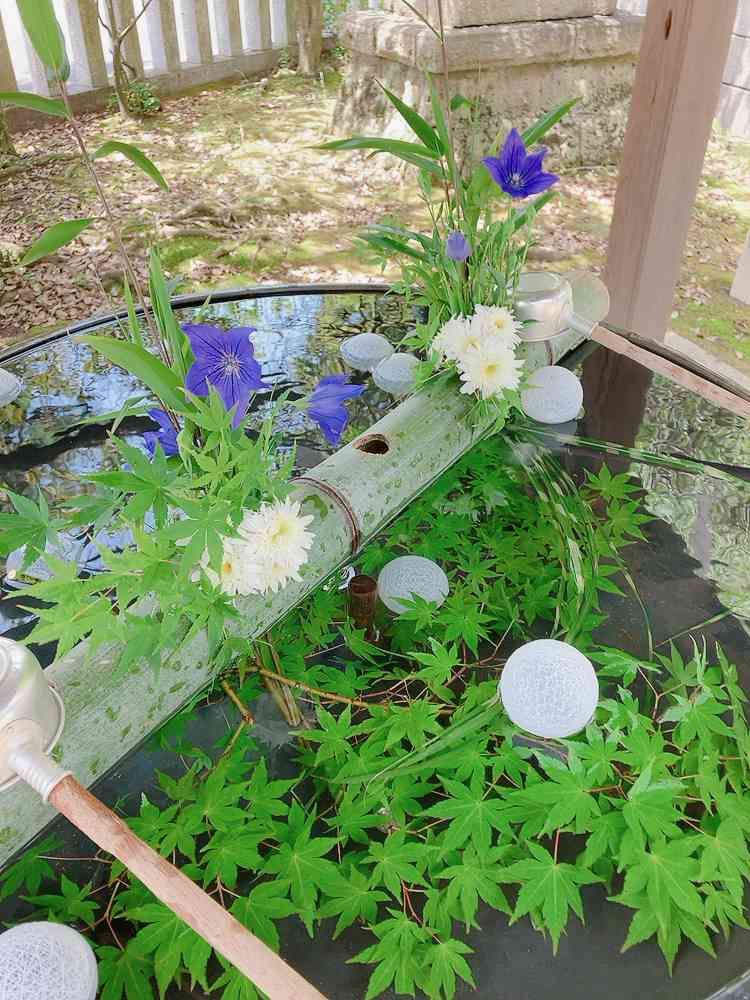 私も、一面花花花💐の花手水を見るたび、水、見えないじゃん❓と思っていたので、こんなふうに仕立ててみました☺️