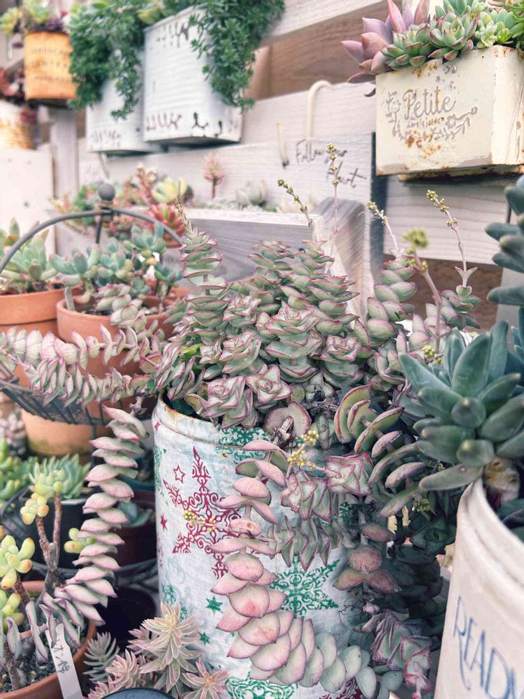 2019年 趣味の園芸で多肉植物を知る。 9月HCで寄せ植えに出会い購入 名前や育て方が知りたくなりGSを始め、多肉にハマる💕 2020年 着実に多肉が増え、多肉棚を自作 置場所が増えると、更に多肉も増える∞ループ😬 2021年 リメ缶作りも覚え、デコパージュやステンシルも素人なりに挑戦中🤭 ますます多肉の沼にハマり中⚠️ 2022年 多肉の数が増えていく中で、菌やダニに悩まされ、殺菌剤や殺虫剤を揃えました。覚える事が沢山で久しぶりにノートを活用中😬 2023年 猛暑で水遣りのタイミングが掴めず、せっかく増やした多肉も沢山★に💦管理できる範囲で楽しもうと思います👌 GSで素敵なpicや情報を得てこれからもタニラー生活楽しみます✨