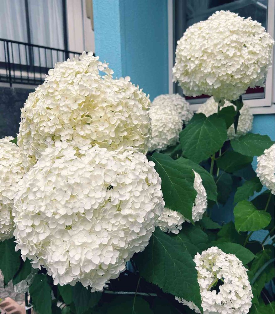 訪問先のお宅のアナベル。大きさにビックリ😲顔くらいの大きさでした👩