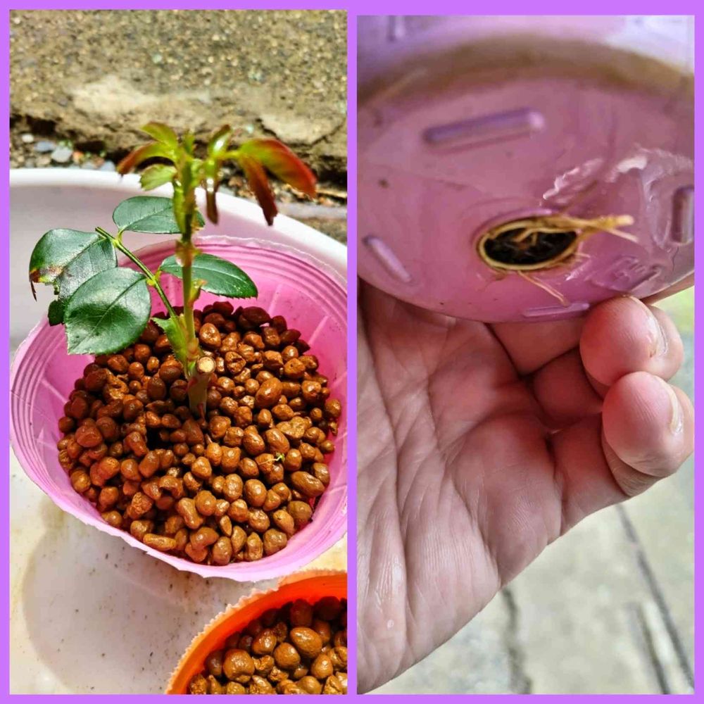 🌹1ヶ月程前に挿し木したツルバラジャスミーナ6ポットの内4ポットの発根が確認出来ました此れから鉢上げする予定です。