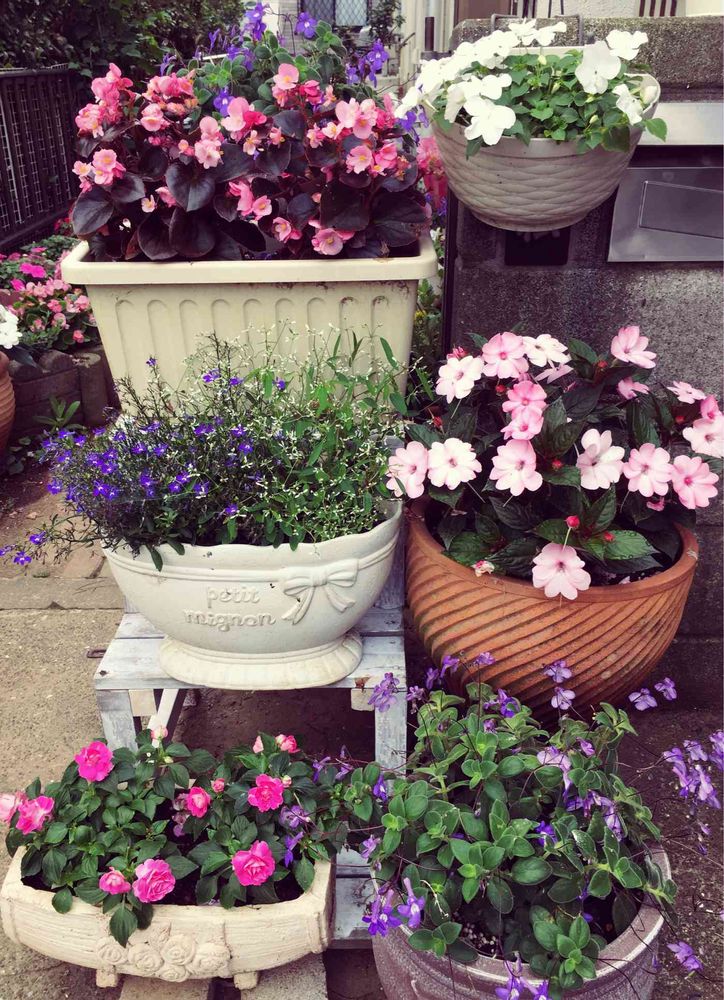 西日の当たる場所なのでいつも同じような花達置き方に悩み中(≧∀≦)