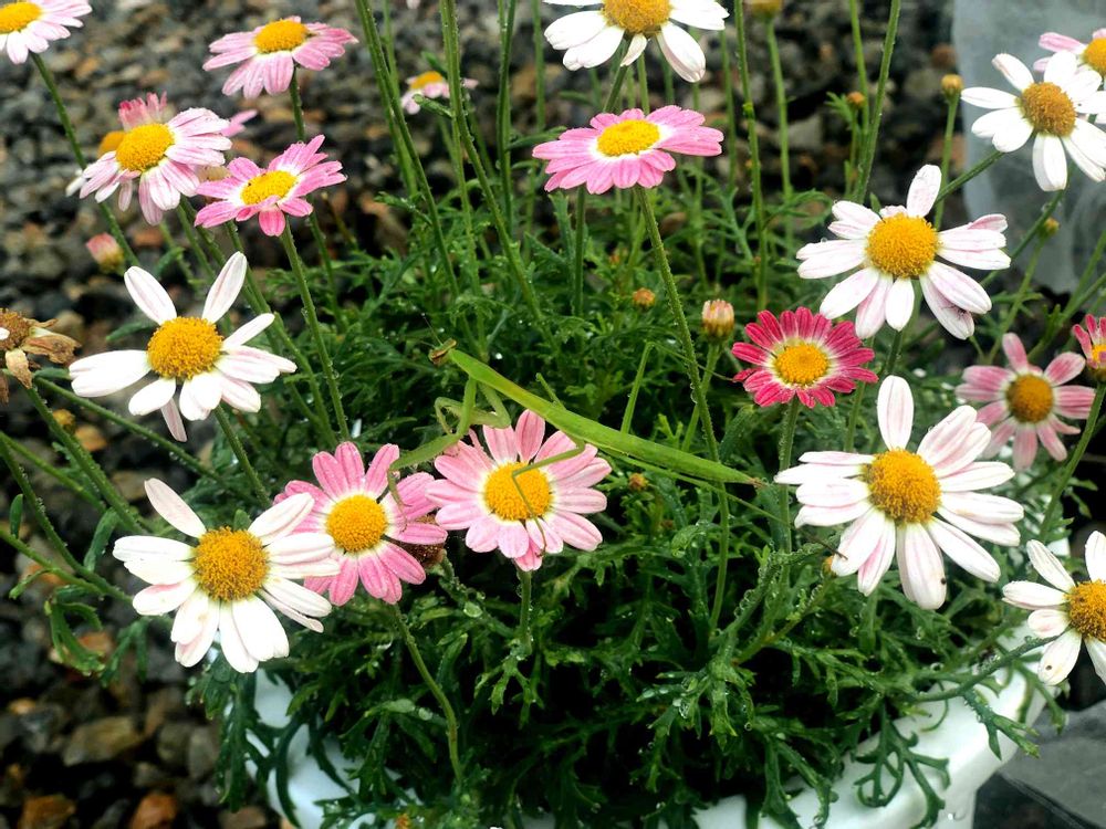 小さな庭,カマキリさん,マーガレットストロベリーホイップの投稿画像