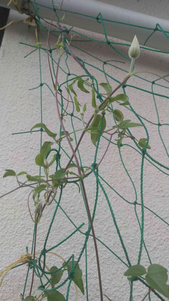 これからです。あと1つのクレマチスは、小柄ながら可愛い紫色の八重咲きなんです。