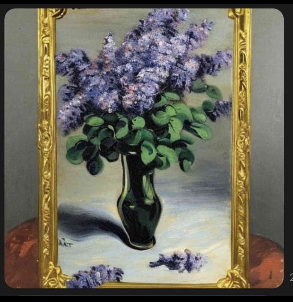 10K,高品質,写実的,油絵, エドゥワール・マネ, 花瓶のライラックとバラ,花の風景画,木製額付きで絵の全体を描く