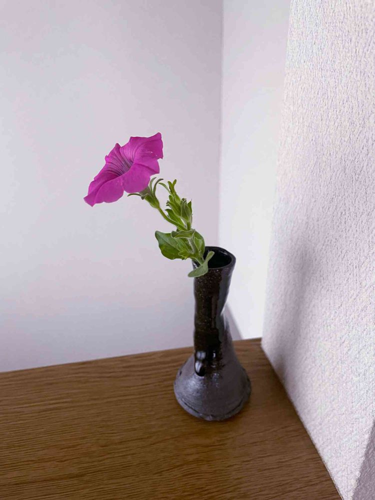 一輪挿しは、すらっとして無くて真ん中あたりがくの字に曲がっている所が、