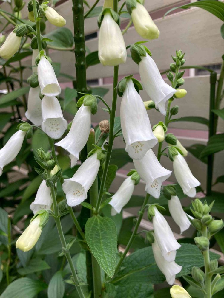 ジギタリス 2番花が咲きました。他の色も1番花を切り戻したのですが、上手く咲いたのは白。