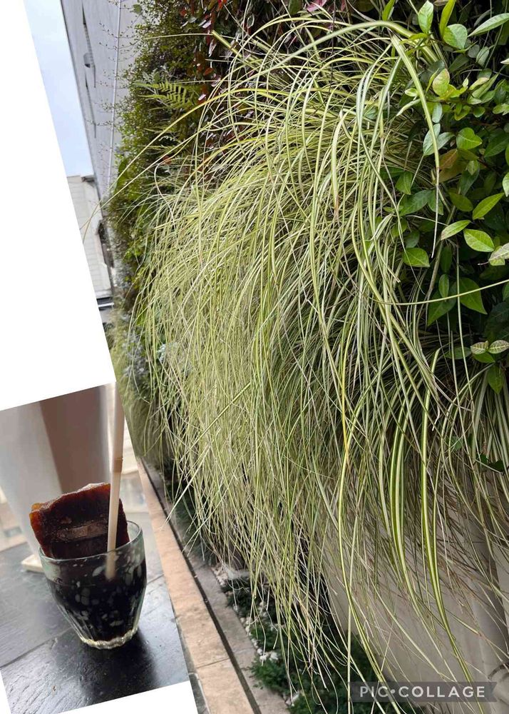 きれいにしだれてる葉っぱ🌿🌿と美味しそうな氷🧊コーヒー😋