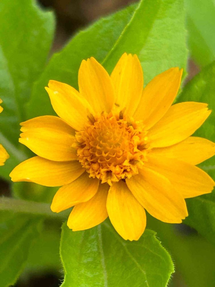 隣の鉢のメランポジウムは、誰かに食べられて丸坊主にされてるよ💧